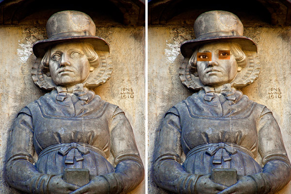 whose eyes are pasted on this photo of a statue